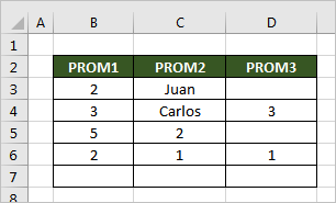Como ejemplo tenemos un listado en la columna B donde tenemos solo números, en la columna B tenemos texto y numeros y en la columna D tenemos números y celdas vacías entonces vamos a obtener el promedio para cada columna par que entendamos el funcionamiento de la función.