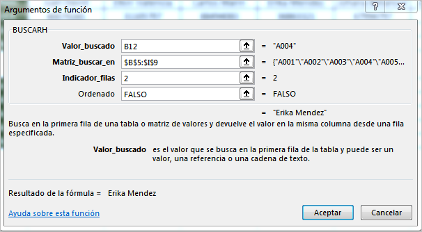 Ordenado: Es un valor logico: Para encontrar la coincidencia más cercana en la fila superior (ordenada de forma ascendente) = VERDADERO u omitido; para encontrar coincidencia exacta = FALSO