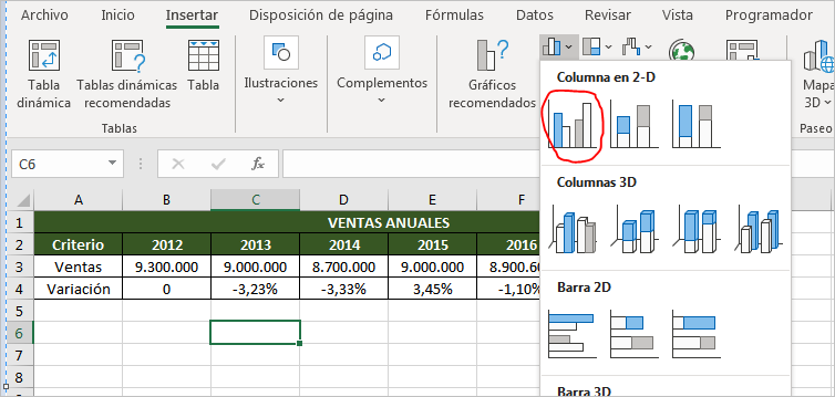 Sabes como hacer dos 2 gráficos en uno solo en excel o como hacer un gráfico de barras y lineas juntos en excel así combinando gráficos. Lo anterior nos permite comparar los datos en dos gráficos, por ejemplo un gráfico en columnas y un gráfico lineal. El ejercicio planteado es comparar las ventas de cada año con respecto al porcentaje de variación.