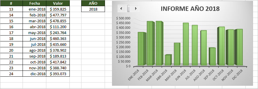 Si le doy clic en la barra de desplazamiento como pueden ver se me actualiza de forma anual.